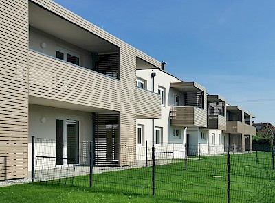 Die 2- und 3-Zimmerwohnungen verfügen über eine Wohnnutzfläche zwischen 56 und 79 m². Sie sind barrierefrei ausgestaltet, wobei die Wohnungen im Erdgeschoß barrierefrei erschlossen sind, die Wohnungen im 1. Stock über die Stiegen.